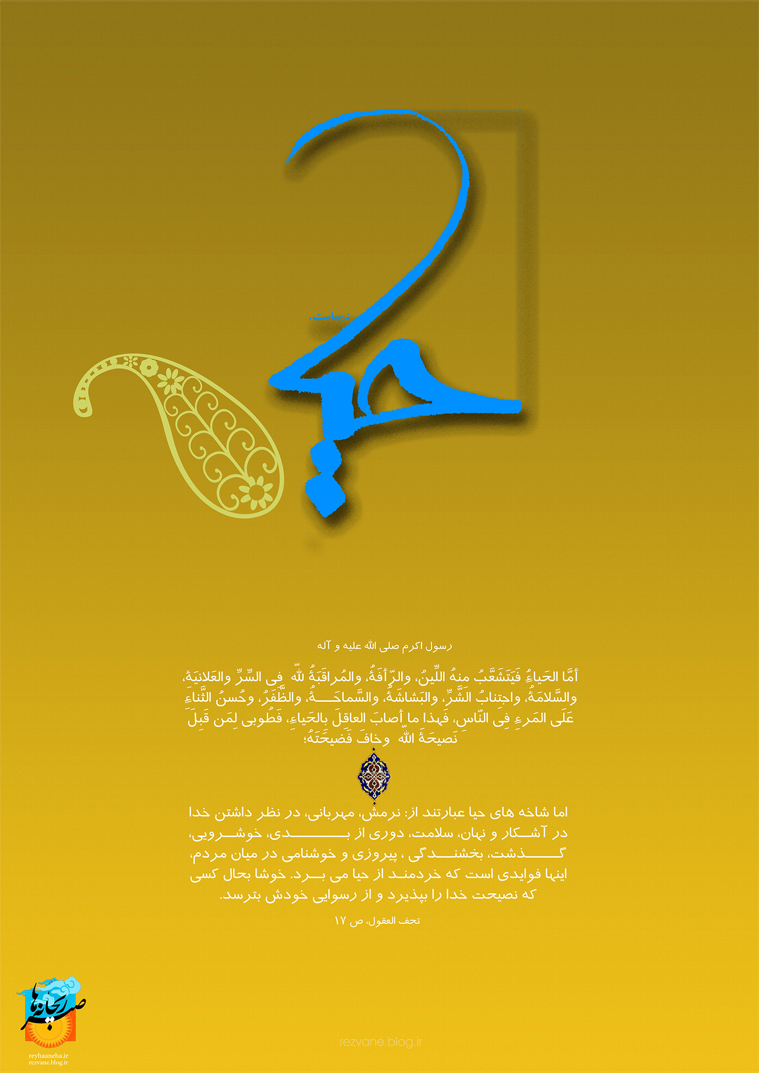 اما شاخه هاى حیا عبارتند از: نرمش، مهربانى، در نظر داشتن خدا در آشکار و نهان، سلامت، دورى از بدى، خوشرویى، گذشت،